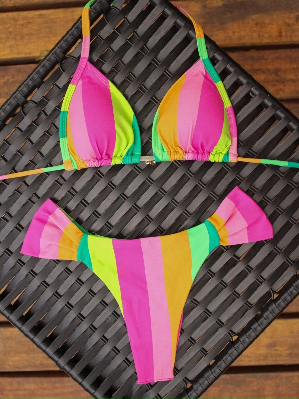 Biquíni Cortininha e Calcinha Borboleta Colorado Listras Colorida